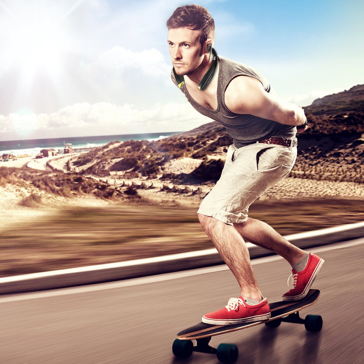 It adopts Bluetooth 4.1 + aptX technology, it contributes HD sound quality in addition to CVC 6.0 noise canceling technology, you can enjoy fine stereo music during exercise, you can easily talk even while driving.