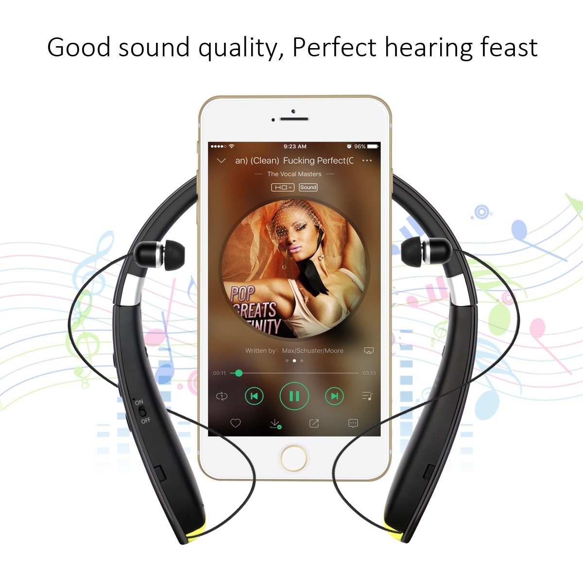 Adopting cutting-edge CSR 8645 chips, the Bluetooth signal is more stable than similar Bluetooth headset, CVC 6.0 noise canceling is supported, the bass, midrange, treble range is clear and first-class stereo Hi-Fi sound quality is transmitted
