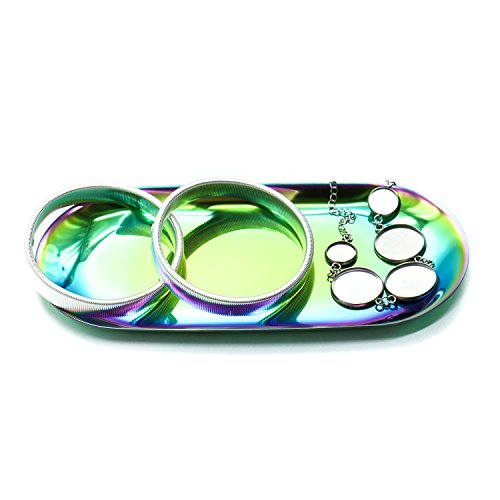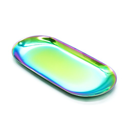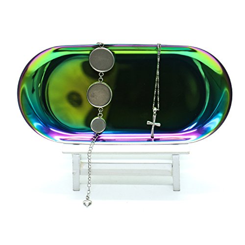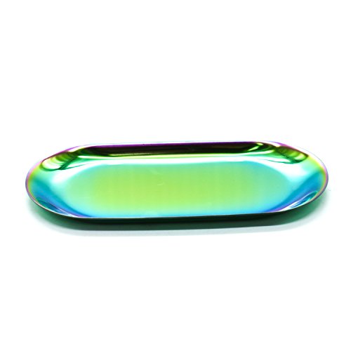 IDS Stainless Steel Towel Tray Storage Tray Dish Plate Tea Tray Fruit Trays Cosmetics Jewelry Organizer, Gradient Color, Oval