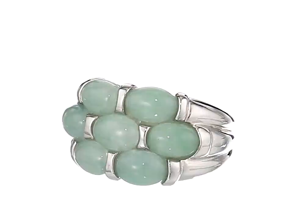 Rhodium-Plated Sterling Silver Green Jade Oval Pattern Ring, Size 7
