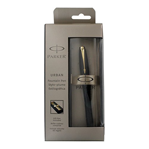 -. Binding : Office Product -. Brand : Parker -. Color : Matte Black -. EAN : 0071641072718 -. Feature : Urban's dynamic curved design offers a bold modern look that dares to be noticed. Unconventional bullet shape for perfect weight and balance. / Muted matte black finish with a powdered aspect. / Stainless steel nib provides superior resistance and durability, and is designed to provide optimal writing angle for right- or left-handed writers. / Limited warranty guarantees product for 2 years from date of original purchase against defects in materials or workmanship. -. Label : Parker -. Manufacturer : Parker -. Model : 1884258 -. MPN : 1884258 -. PackageQuantity : 1 -. PartNumber : 1884258 -. ProductGroup : Office Product -. ProductTypeName : WRITING_INSTRUMENT -. Publisher : Parker -. Size : Fountain Pen -. Studio : Parker -. Title : Parker Urban Matte Black Gold Trim Fountain Pen - Medium Point -. UPC : 071641072718