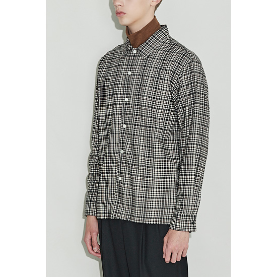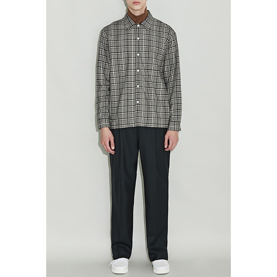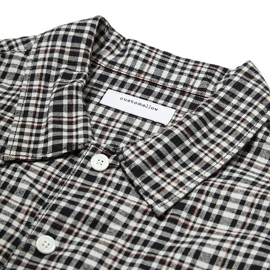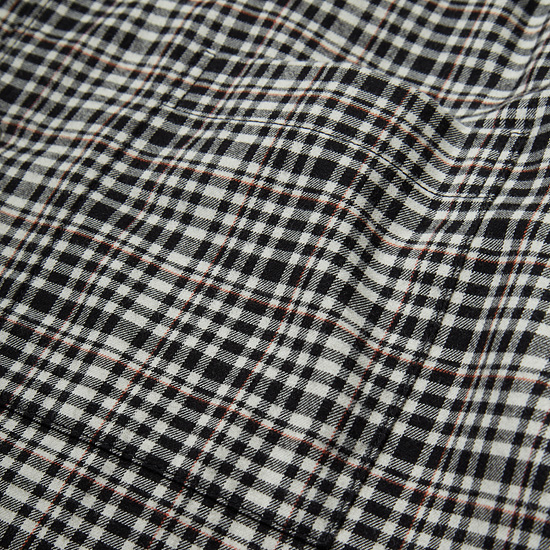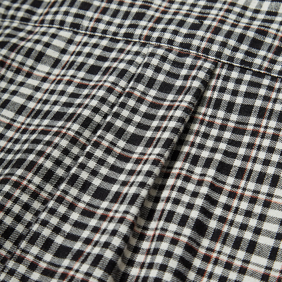 - 아이보리와 블랙 모노 체크에 레드 핀이 포인트로 들어간 기모 원단을