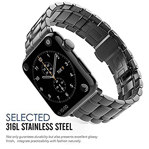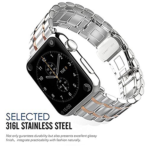 -. Feature : Easy to Install, remove, and replace。 A superb replacement watch band for Apple watch / 316L stainless steel non-detachable strap with invisible Buckle. Apply AP electroplating to colour band's surface, it is uneasy to lose color / Chic design suitable for bussiness, party, daily using and so on. Available for both men and women, durable and elegant material makes you feel comfortable / Smooth surface and luxury apperance will have a fantastic bling bling visual perception, you look more confident / Include:1*Stainless Steel Apple Watch Band,1* Beautiful box