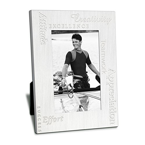 4" x 6" Vertical Photo Frame With Embossed and Debossed Motivational Lingo, Brushed Aluminium, Black Felt Backing, Glass Front. Silver