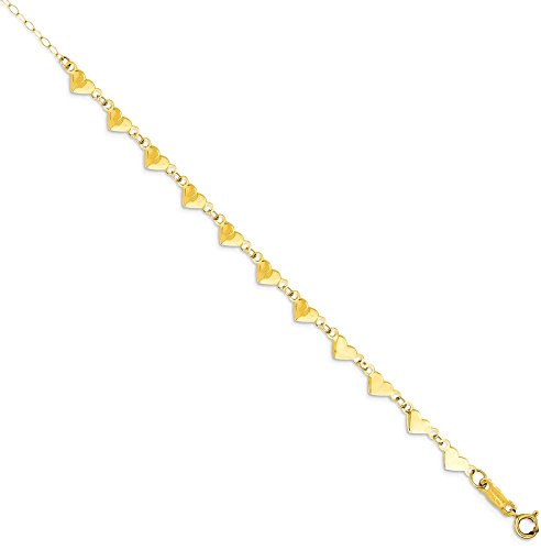 -. Title : ICE CARATS 14k Yellow Gold Oval Cuban Link Chain Hearts 1 Inch Adjustable Plus Size Extender Anklet Ankle Beach Bracelet Fine Jewelry Gift Set For Women Heart
