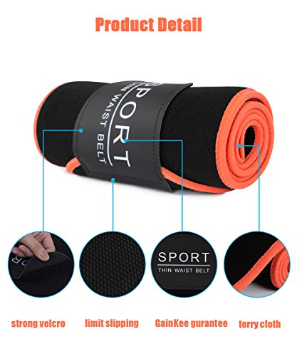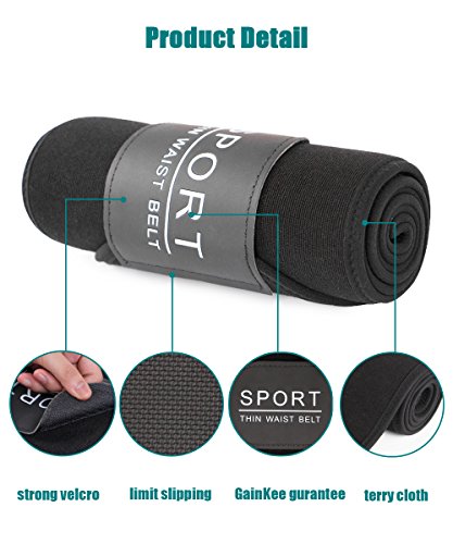 -. Feature : Fat Burning and Weight Lose - Increases the internal temperature of the body to help you burn fat in the areas of your stomach, Abdomen and back while you exercise, enhancing thermogenic activity and sweat,3 times more sweat levels than usual. / Increase Back Support - The compression of the trimmer provides extra support for your lower back and helps you exercise safe lifting techniques. It provides support to help improve your posture. / Free to Adjust for Waist 20" to 51" - One size fit all,adjustable Velcro closure fits waists up to 51 inches. 9.2 inch wide to wrap around the entire stomach,both for men and women. By adjusting the adhesive tape, fit around your waist freely and look slimmer. / Engineered with a special Anti-slip - interior grid surface to prevent slipping, bunching, and moving of any kind.Specially designed interior to repel sweat and moisture to prevent sweat and bacteria build up,No more stinky belts soaked with sweat and germs after every use. / Friendly Customer Service and Return Policy: GainKee offers excellent customer service; any question will be answered within 24 hours. We are so confident with our product that we provide return and exchange service within 3 months.