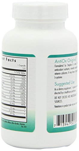 Formulated by Stephen A. Levine, Ph.D., this product set the industry standard for antioxidant formulations. It combines key antioxidant nutrients with the minerals necessary for the key antioxidant enzymes, as well as the B vitamins that act as cofactors. Original AntiOx may have a strong odor due to the sulfur amino acid L-cysteine.Feature