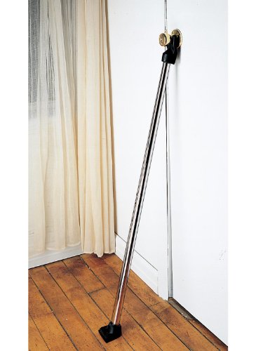 -. Feature : Stop break ins at home or away / Rubberized grip on the telescoping steel tube jams under any doorknob to prevent burst deadbolts and kick-ins. / Skid resistant rubber foot grips wood floors, tile, linoleum and carpet / Telescopes to 42 inches / Measures 26"L x 2.5" Diameter