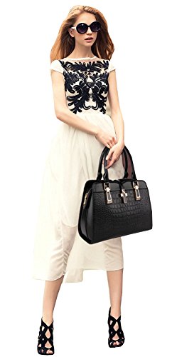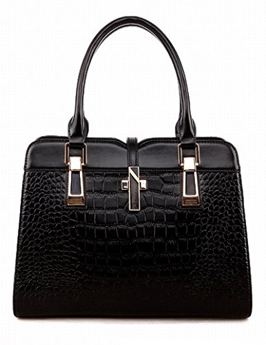 ILISHOP Women's Genuine Leather New Office Lady Casual Vintage Crocodile Top Handle Tote Shoulder Crossbody Bag
