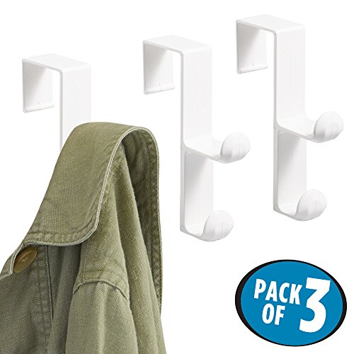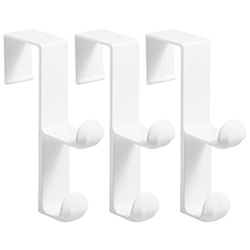 InterDesign Over Door Organizer Hook for Coats, Hats, Robes, Clothes or Towels – Double Hook, White, Pack of 3