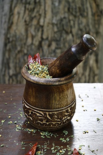 GoCraft Wooden Engraved Mortar and Pestle Grinder for Herbs, Spices and Kitchen Usage, Natural Mango Wood Engraved | Handmade Mortar and Pestle - 3.5 in