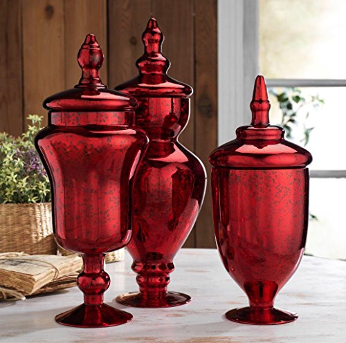 Classic Home Large Glass Red Apothecary Jars, Wedding Candy Buffet Containers (Set of 3)