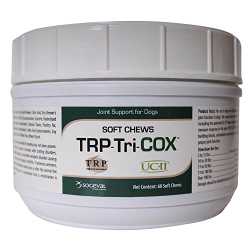 Trp-Tri-Cox contains a unique blend of ingredients that target all aspects of joint health in dogs. The unique blend of ingredients in TRP-Tri-COX helps maintain normal inflammatory and immune response in the joint. TRP-Tri-COX also provides the cartilage building blocks, antioxidants and muscle support that are necessary for proper joint function.Feature