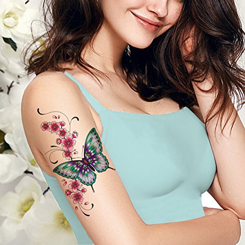 TAFLY Large Butterfly Flower Temporary Tattoos-Long Lasting Waterproof Body Art Transfer Tattoos Sticker 3 Sheets