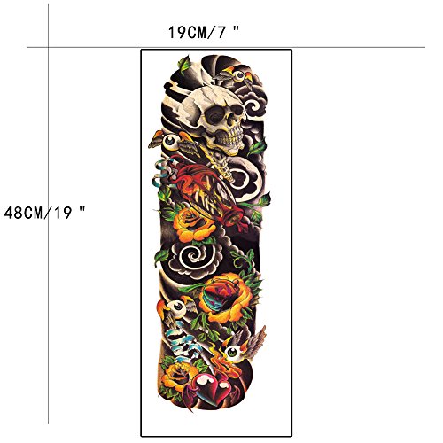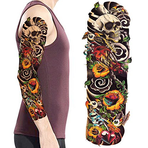 TAFLY Colorful Skull Extra Large Tamporary Tattoos Full Arm Long Lasting for Men 2 Sheets