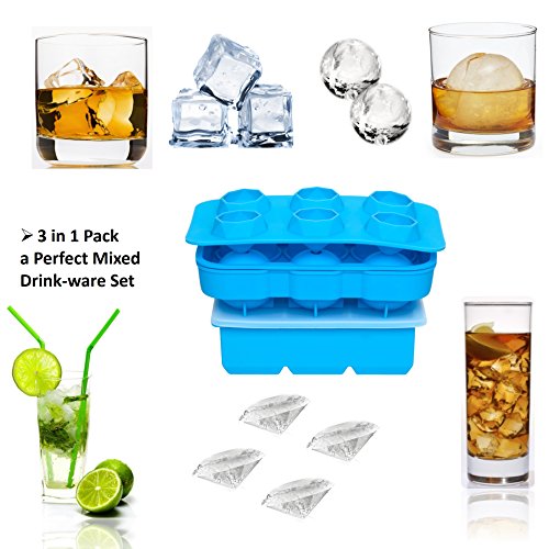 A PERFECT MIXED ICE MOLD SET: for 6 Large Square Ices, 6 Medium Ice Balls and 6 Small Diamond-Shape Ices