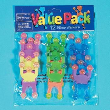 These 2 3/4" Plastic Slime Walkers are a hit for parties. Watch as your guests stick these slimy men to various objects and provide hours of entertainment. These gooey toys come in 3 assorted color schemes. 12 per package.