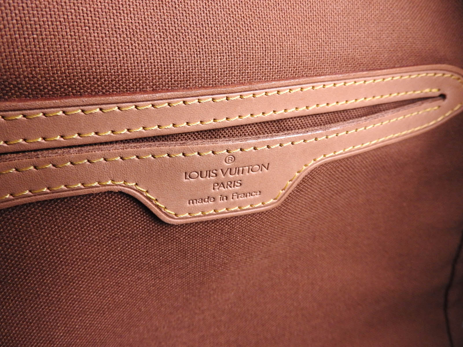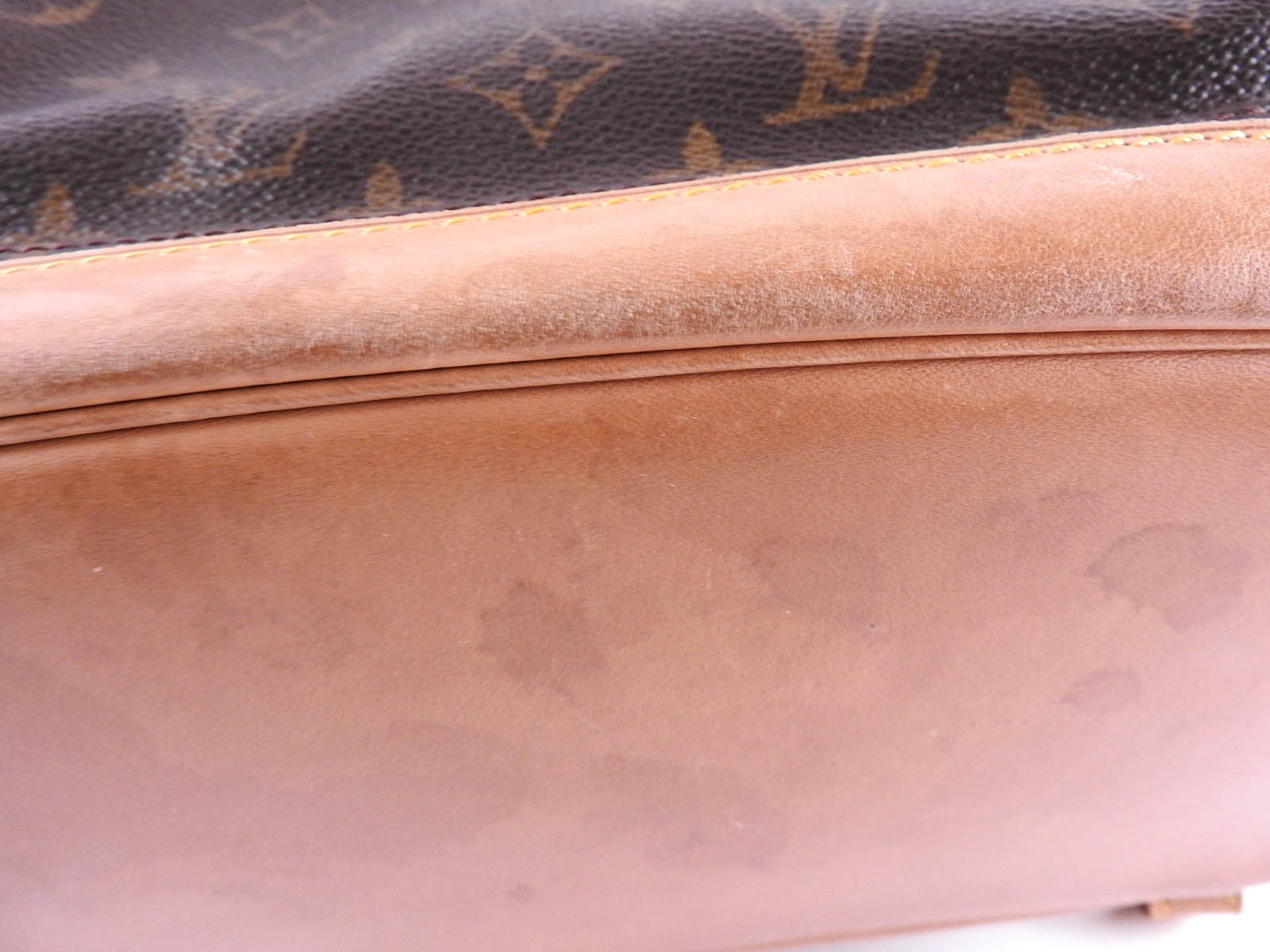 Monogram: Slightly used feeling. Slightly stained and wrinkled. Leather: Used feeling. Some scratches, stains, wrinkles, abrasions and tanning. |