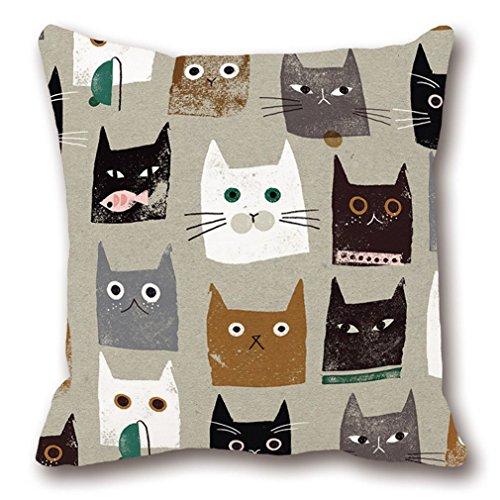 LeiOh Decorative Pillow Sham Cotton Linen Square Unique Printed Lovely Cat Pattern Throw Pillow Case Cushion Cover 18 x 18 Inches