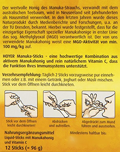 -. Title : Hoyer Bio Manukahonig Liquid-Sticks MGO 100+active, 12 Stücks, 1er Pack (1 x 96 g)