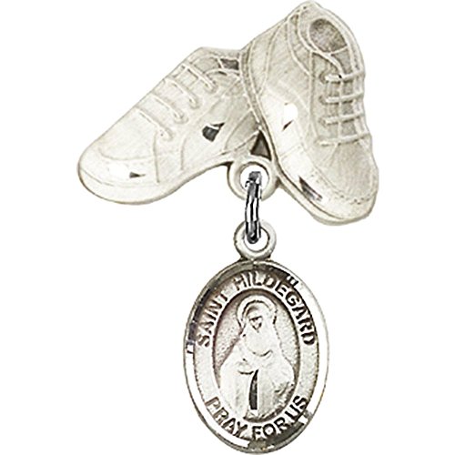 -. Title : Sterling Silver Baby Badge with St. Hildegard Von Bingen Charm and Baby Boots Pin 1 X 5/8 inches