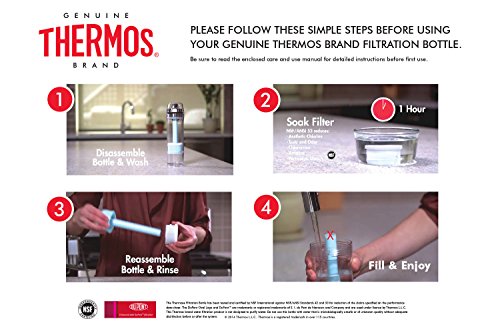 Thermos NSF/ANSI 53 Certified 22 Ounce Tritan Water Filtration Bottle, Stainless Steel