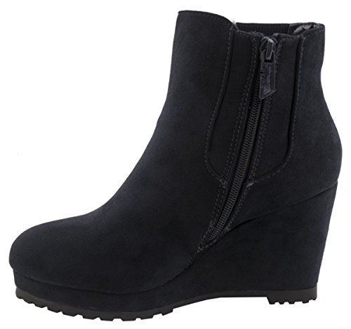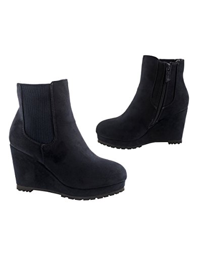 -. Title : Elara Wedges Stiefeletten | Trendige Plateau Boots | Zipper Wildlederoptik