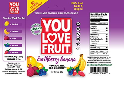 You Love Fruit Premium Organic Fruit Snacks Earthberry Banana Pack of 12