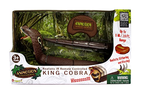 King of adventure, this frightfully realistic, formidably fast cobra is happy to speed the way to adventure (that's why it's willing to stick its neck out!). Hissing and slithering on its slippery serpentine segments, it welcomes direction from young herpetologists, and will respond instantly to its two-button remote control (up to a range of 16'). Takes 6 AAA batteries (not included). For ages 3 and up. Size: Approx. 23½"L. WARNING CHOKING HAZARD - Small Parts. Not for children under 3 years.Feature