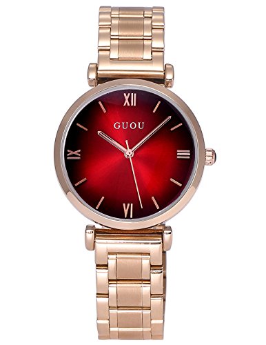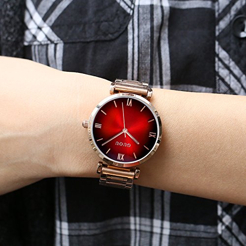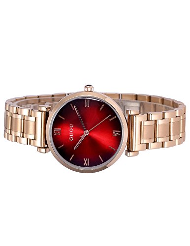 AMPM24 WK1238 Lady Quartz Analog Red Dial Stainless Steel Wrist Watch