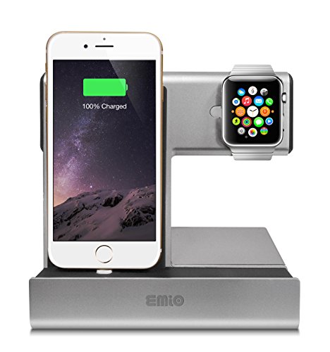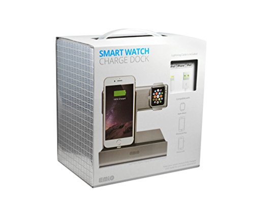 -. Binding : Wireless Phone Accessory -. Brand : Emio -. Color : Silver -. EAN : 0896557002303 -. Feature : Apple Certified MFI Cable Recharges both iPhone and Apple Watch at the same time. / Angled stand shape allows vertical docking of iPhone and Apple Watch. / Sturdy metal stand remains upright on your desk, dressers or nightstands. / Sleek design imbeds magnetic charger within stand without revealing any cords. / Made for iPhone 5, iPhone 5S, iPhone 6, iPhone 6S. -. Label : Emio -. Manufacturer : Emio -. PackageQuantity : 1 -. ProductGroup : Wireless -. ProductTypeName : WIRELESS_ACCESSORY -. Publisher : Emio -. Studio : Emio -. Title : Apple Watch and iPhone Charge Dock and Cable (Apple Certified MFI) for Apple Watch and iPhone (Silver) -. UPC : 896557002303