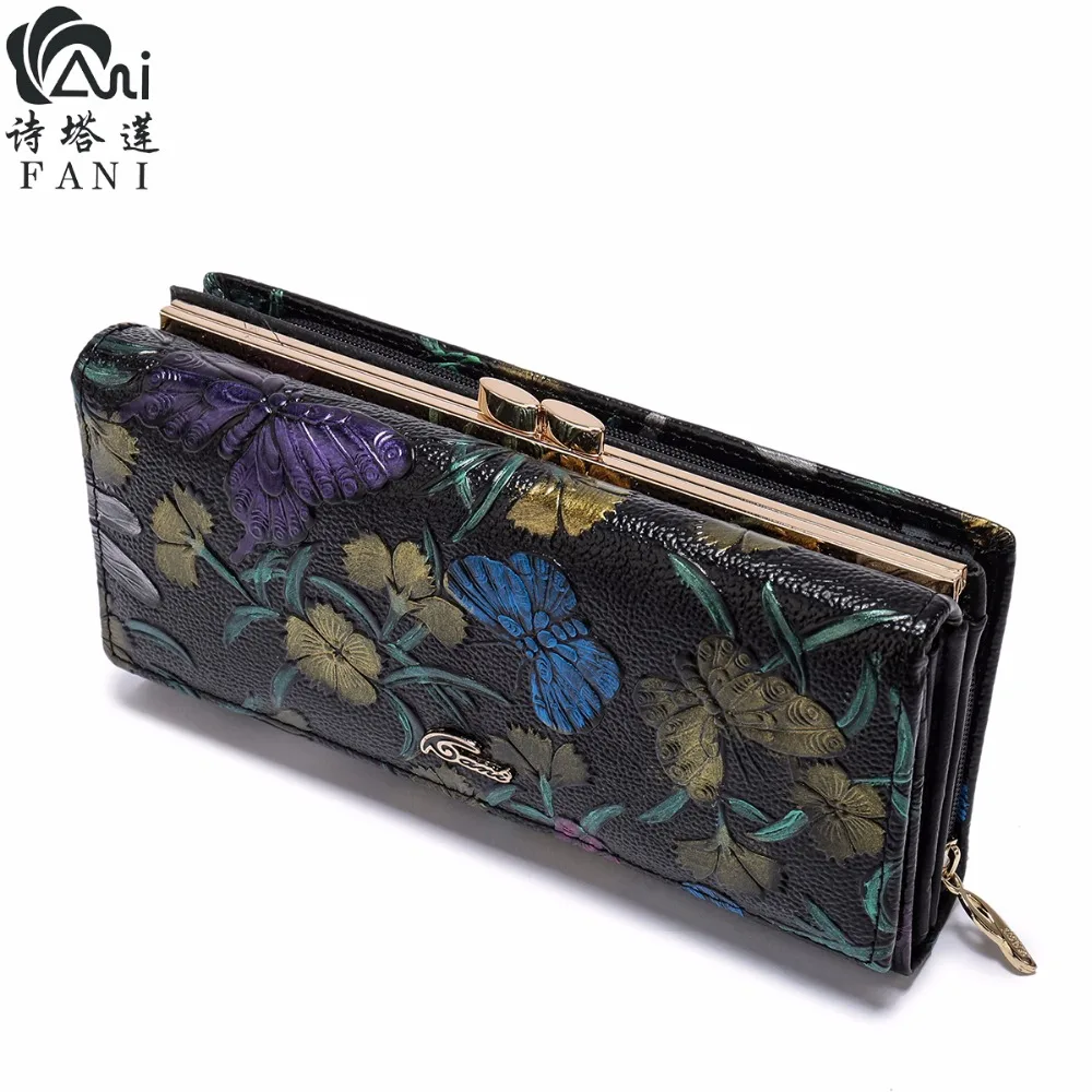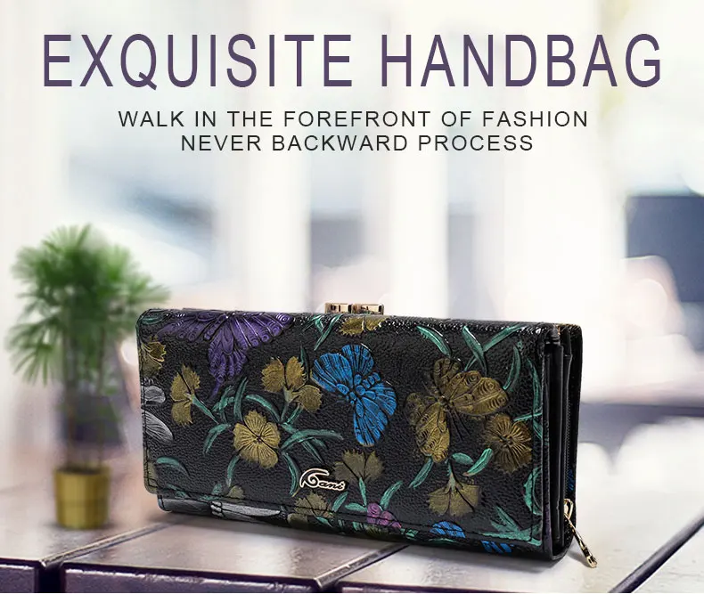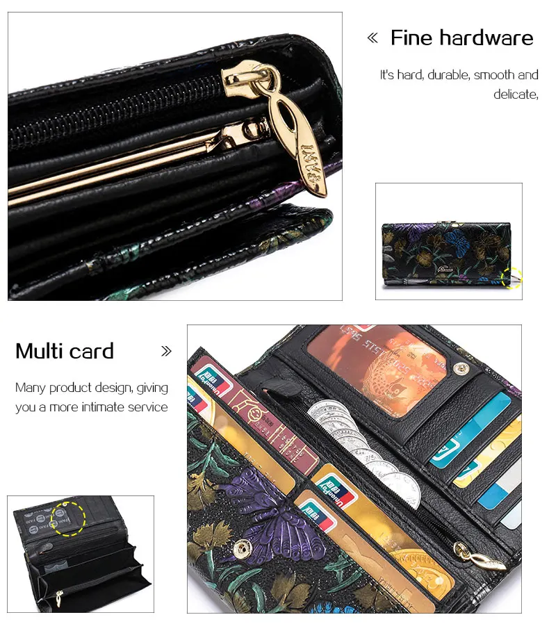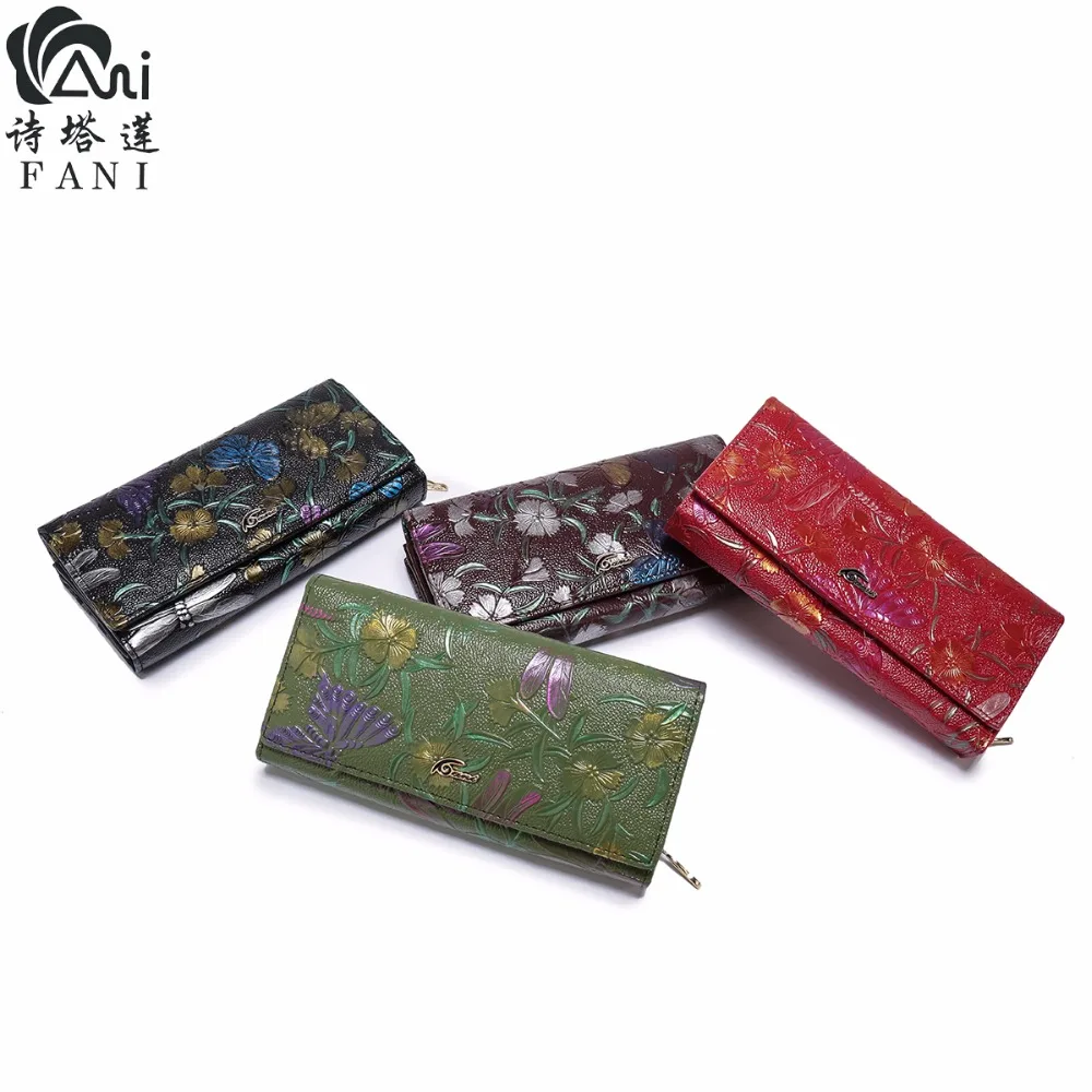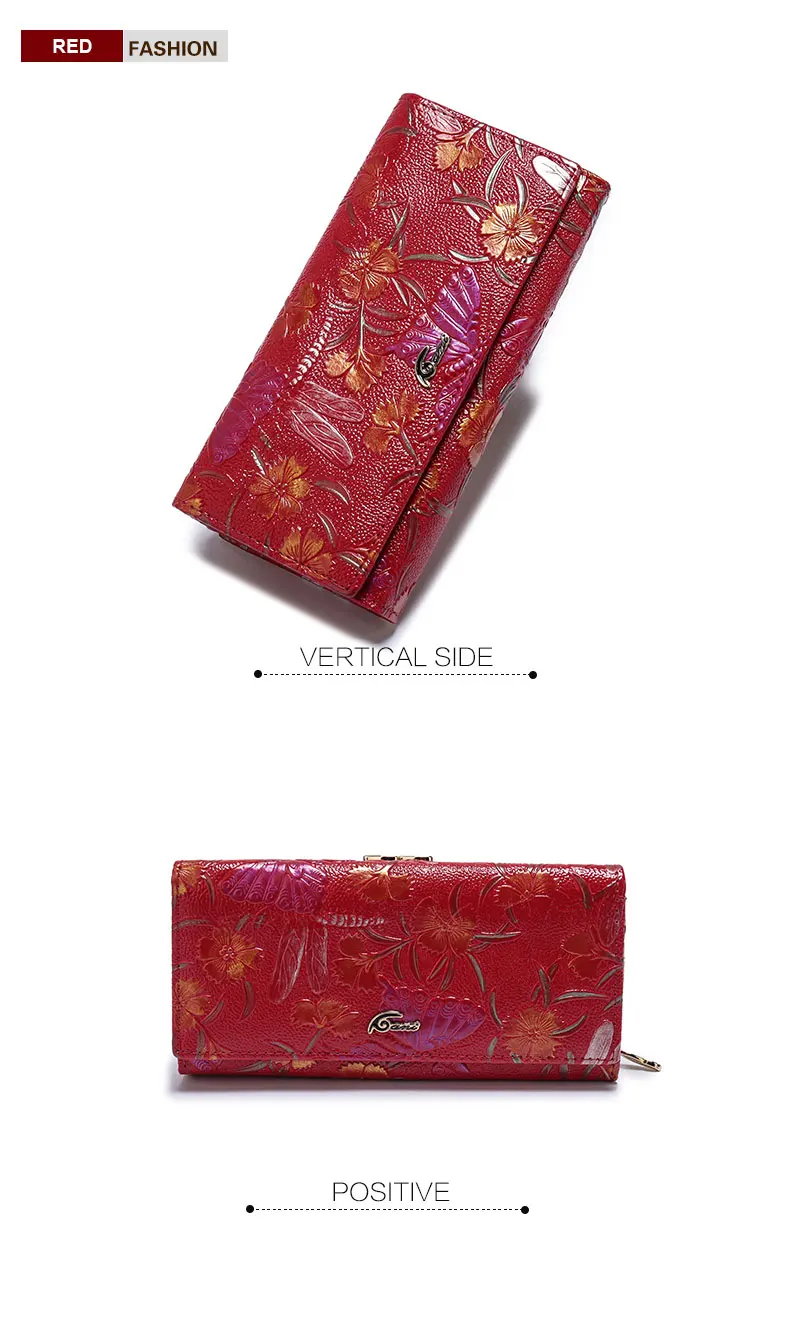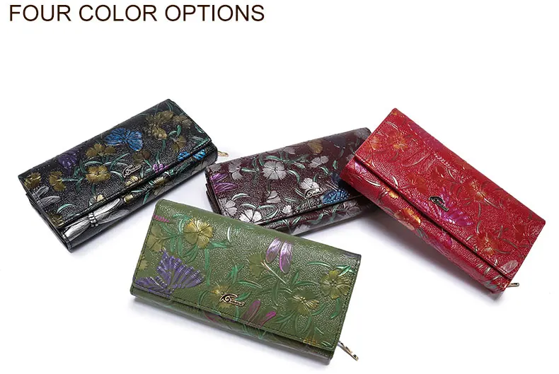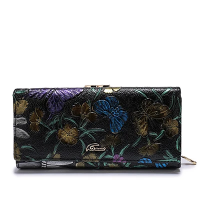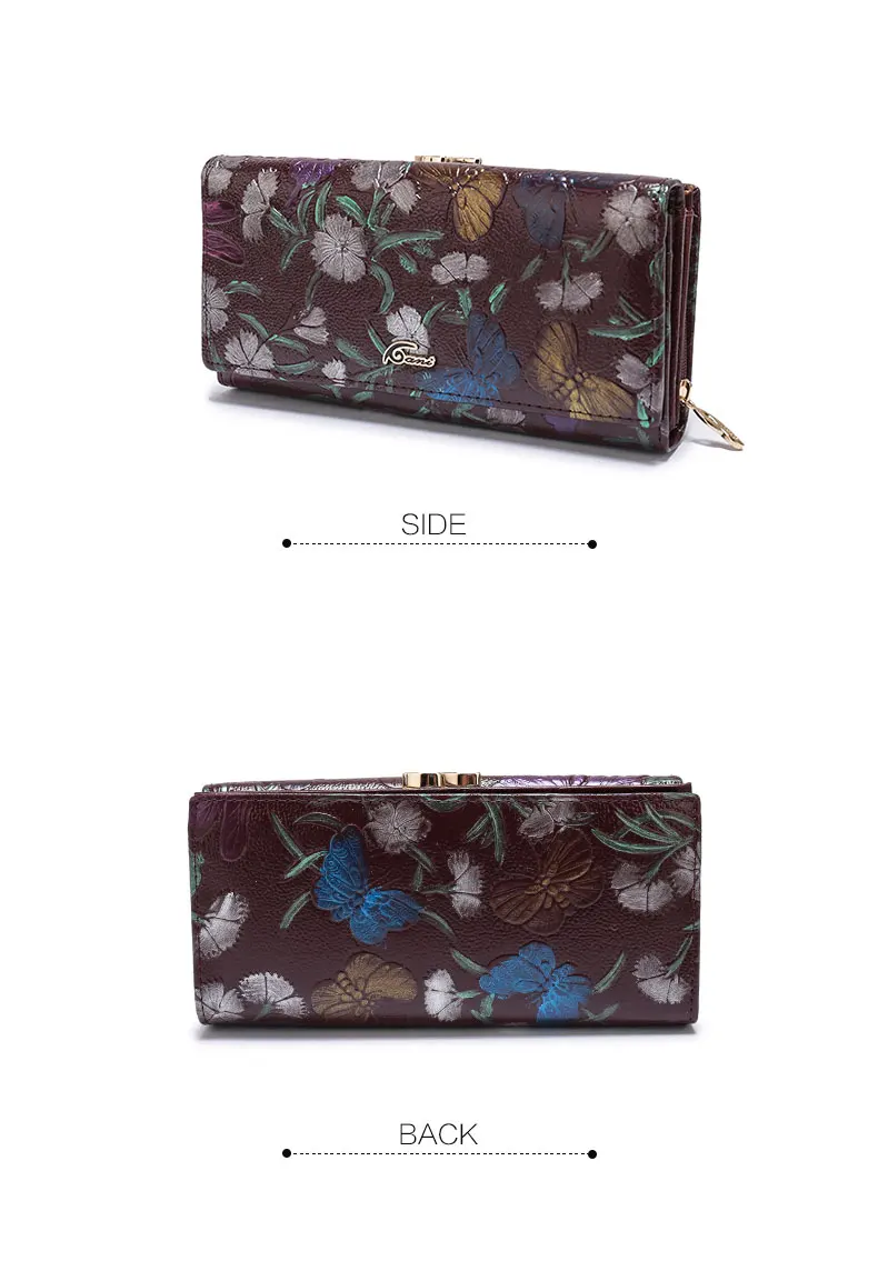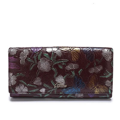 Print:Flower Print Genuine Leather Wallets
