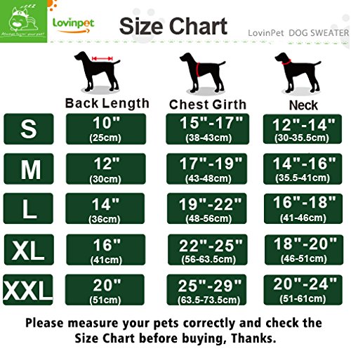 DOGGIE SWEATER SIZE CHART: Dog sweater Small (Length: 8", Chest: 11.5", Neck: 8.5") Medium Dog sweaters (Length: 10", Chest: 12.5", Neck: 9.5") Puppy sweater L (Length: 12", Chest: 14", Neck: 10.2") Puppy sweater XL (Length: 14", Chest: 15", Neck: 11") Dog sweater XXL (Length:16", Chest: 16.5", Neck: 11.8")