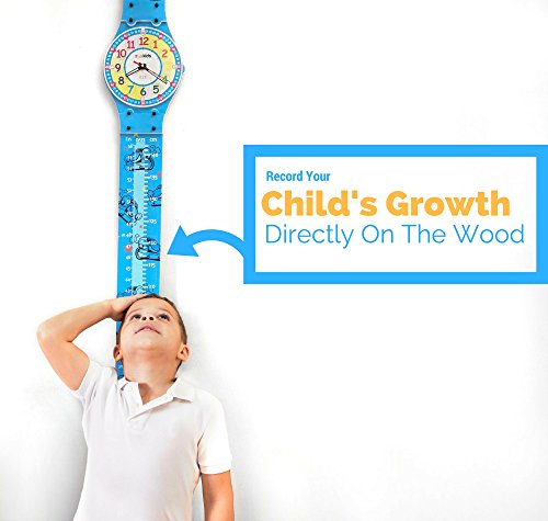 TIME FLIES WHEN YOU'RE HAVING FUN We didn't want to make just any ol' boring growth chart ruler. Instead, we wanted to optimize your kid's learning experience by doubling the chart as an educational kids clock for their bedroom. Every minute of the day is an opportunity to teach your kid, so we created this cute clock and growth chart for the wall. Now, your little one can keep track of their growth while also learning how to tell time.