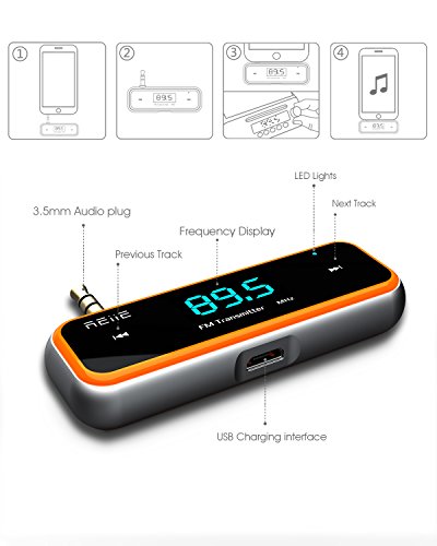★Stream music from any 3.5mm music player to your home or car stereos. Transmits on FM channels 88.1 MHz - 107.9 MHz, 0.1Mhz/step, Hands-free talking function offers you more safety and convenience while driving on the road