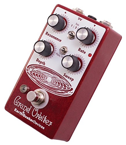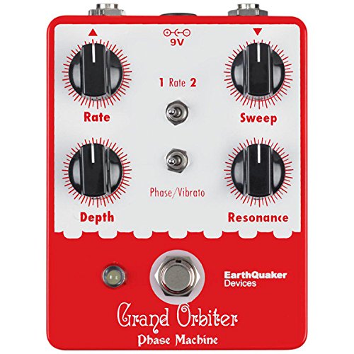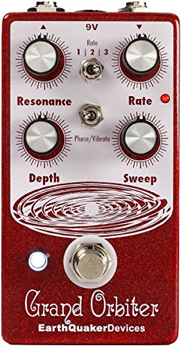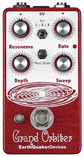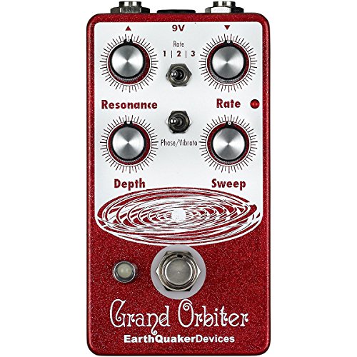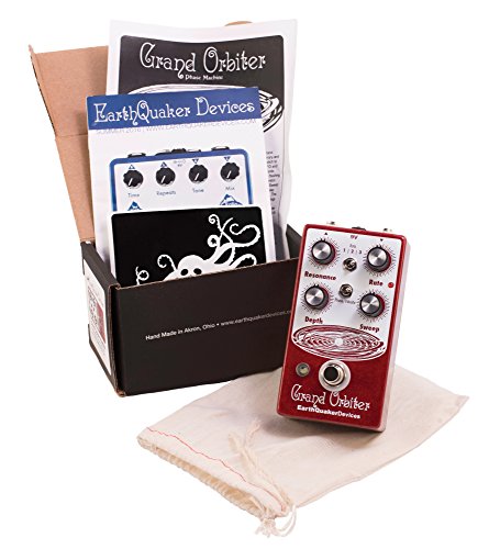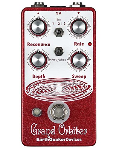 Studio : EarthQuaker Devices Publisher : EarthQuaker Devices Binding : Electronics Product Description The Grand Orbiter is a 4 stage OTA-based phaser with a diverse feature set that can go from stationary and resonant to slow and mellow and on through fast and swirly. It has three way toggle switch to select between the ranges of modulation: Rate 1 is slow sweep mode, Rate 2 kills the LFO and allows you to use the Grand Orbiter as a fixed resonant filter and Rate 3 is fast sweep mode. The master Rate control fine tunes the speed of the LFO in each of these modes and the flashing red LED acts as a visual indicator, even when the effect is in bypass mode. The Depth control blends the shifted signal in with the dry signal and controls the intensity of the effect. The Sweep control governs the peak frequency of the phased signal's tone, turned full clockwise the sweep is lively and intense, whereas turning counter clockwise yields a darker, more laid back peak. The Resonance provides a wide range of control over regeneration and at higher settings adds a more pronounced and resonant tone. You can also use the Grand Orbiter as a true pitch vibrato with the "Phase/Vibrato" switch. When in "Vibrato" mode, the dry signal is removed and the Depth controls acts as a volume control. This pedal is 100% analog, true bypass and built by entirely by hand in beachy Akron, Ohio. 0