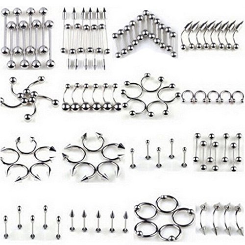 -. Title : 【ノーブランド 品】舌 眉 唇 腹 へそピアス  ボディピアス  ジュエリー  シルバー  1セット 85個
