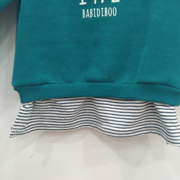 밑단에 스트라이프로 포인트를 준 티셔츠입니다한치수 크게 주문하시길 권장드려요