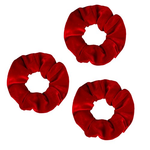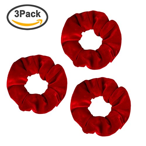 Ondder Velvet Scrunchies Hair Bobble Elastics Hair Scrunchy Hair Bands Headbands Hair Ties Ponytail Holder, 3 Pack (Red)