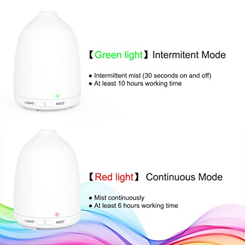 - 🎁【Auto Off Feature to Ensure Your Safety】-- Your safety is our top priority. This diffuser features with auto off if water used up. Totally safe for sleeping , baby , children. Safe and reliable. There are two mist mode, intermittent mode lasts about 6-8 hours. Continuous mode lasts about 4-6 hours.