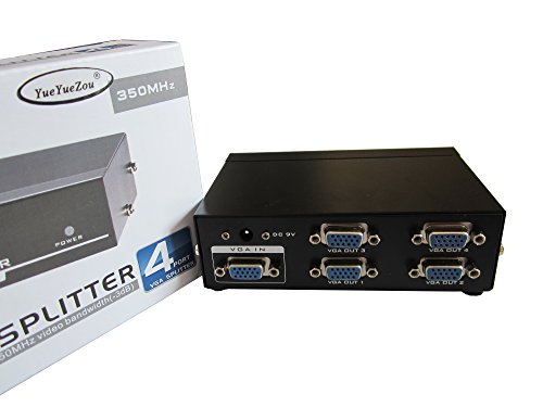 YueYueZou® High Definition 1*4 Port Vga Splitter Metal Box Bandwidth 350 Mhz 1 PC To 4 Monitors VGA/SVGA LCD CRT 4 Port Video Splitter Box