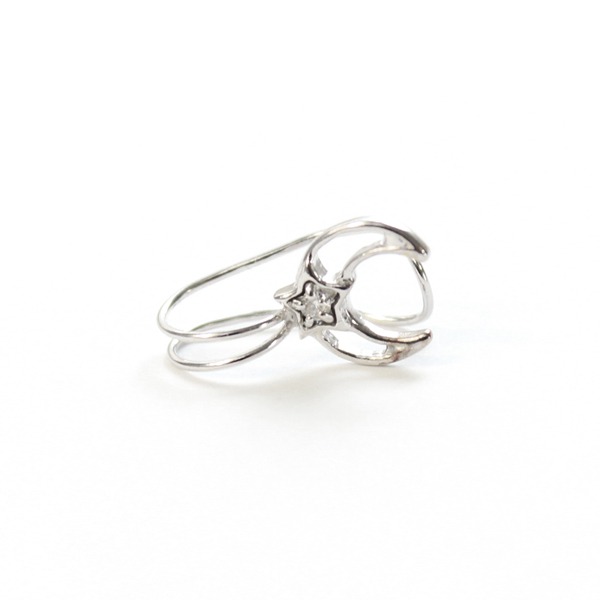 三日月と星、煌めくダイヤモンドがかわいいイヤーカフ。着けているのも忘れてしまう程の軽やかな着け心地と、耳たぶに合わせて挟むだけの手軽さも魅力です