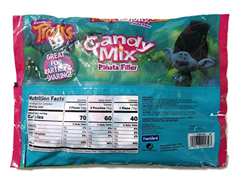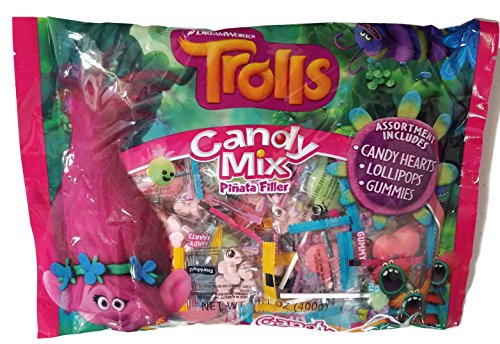 Product DescriptionDream Works Trolls Candy Mix Pinata Filler Assortment includes Gummies, Lollipops and Candy Characters. Net weight 14.1oz/400g.0