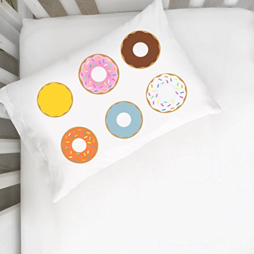 FOR DONUT LOVERS - One 14"x20" White Pillowcase with cute doughnuts all over.