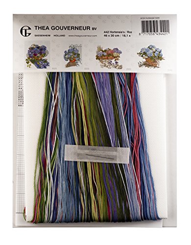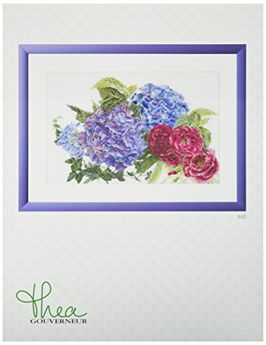 Thea Gouverneur 442A Hydrangea and Rose on 16 Count Aida, Counted Cross Stitch Kit, 18.1-Inch-by-11.8-Inch