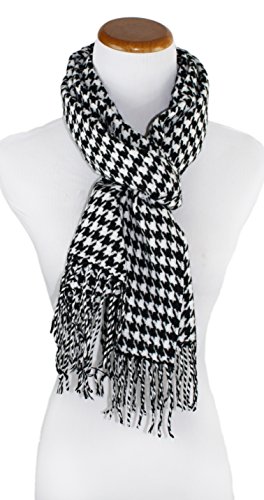 -. Feature : Classic houndstooth styling / A cute everyday scarf / Soft and comfortable / 100% Viscose / 68 Inches by 12 Inches with a 3 Inch Fringe