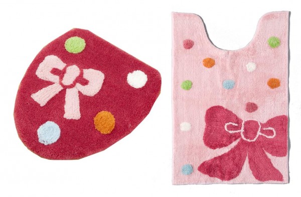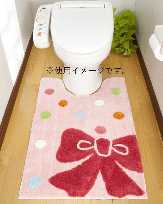 | 大きなリボン柄がキュートなトイレタリーです。マットは手前に長いサイズで、裏面に滑りにくい加工を施しているので、横ズレしにくいです!! |