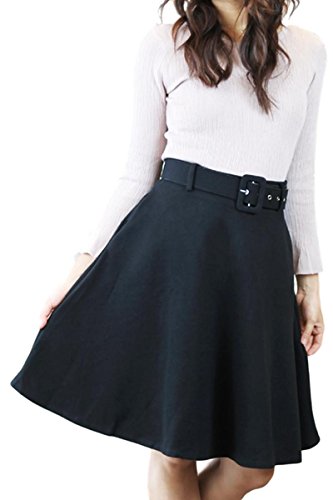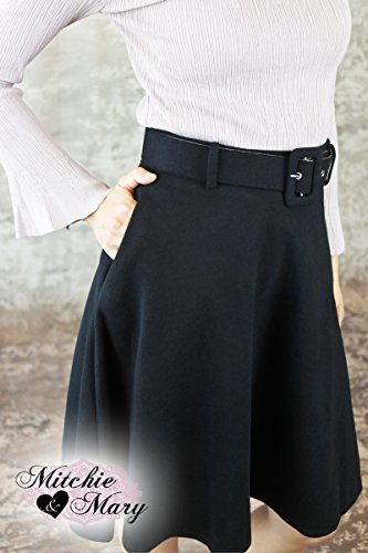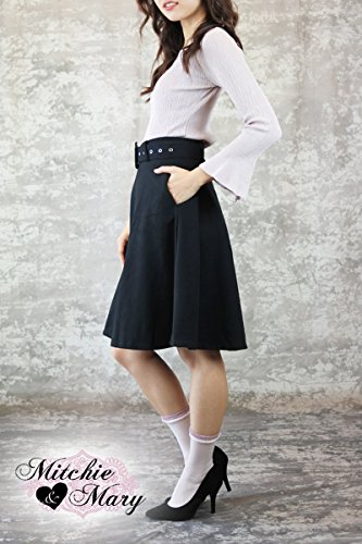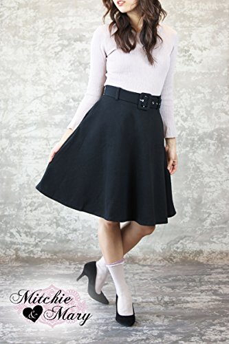 -. Title : Mitchie & Mary フレアスカート ボリューム ベルトつき レディース フレア ウールブレンド (M, ブラック)
