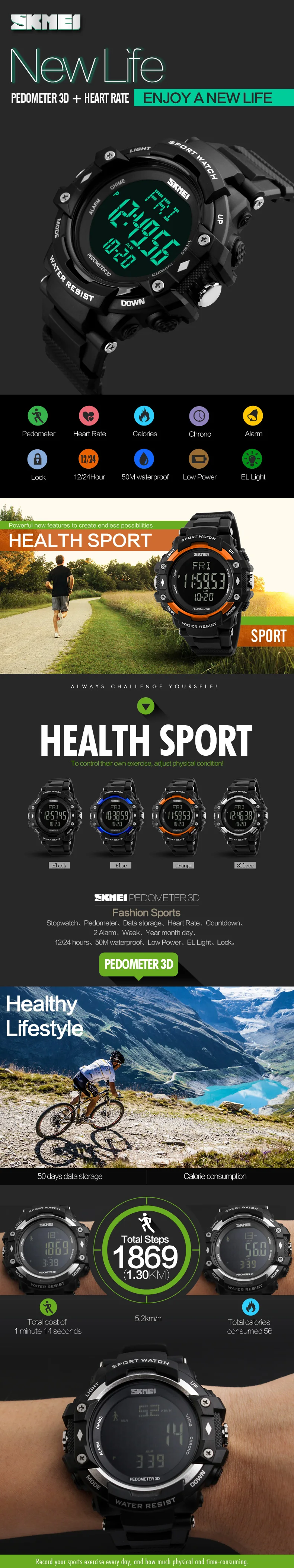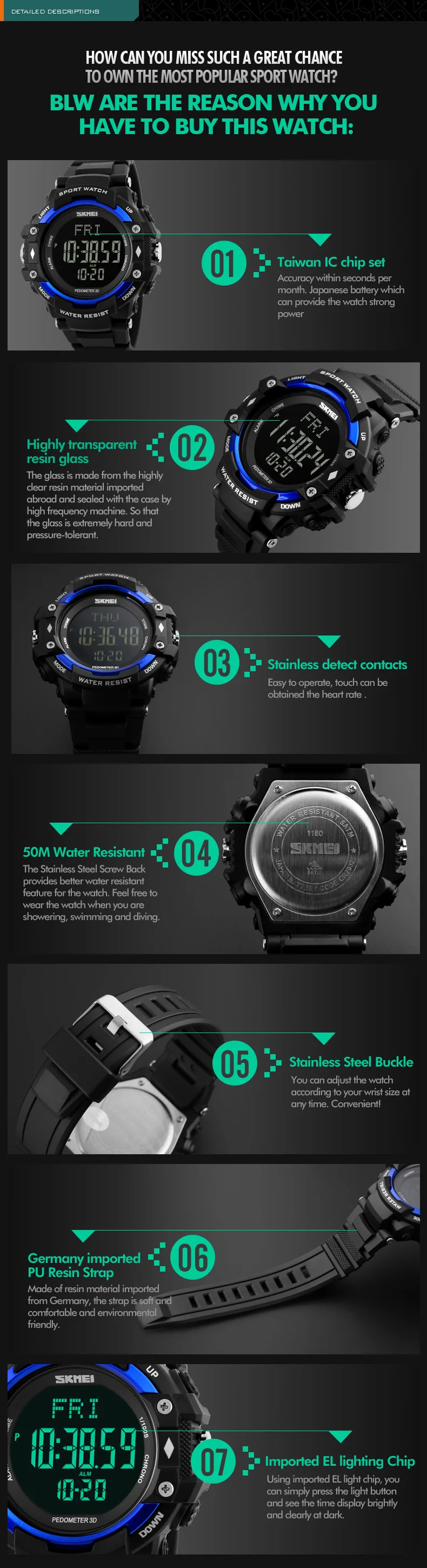 Feature:Water Resistant,LED display,Luminous,Complete Calendar,Back Light,Shock Resistant,Auto Date,Week Display,Alarm,Heart Rate Monitor