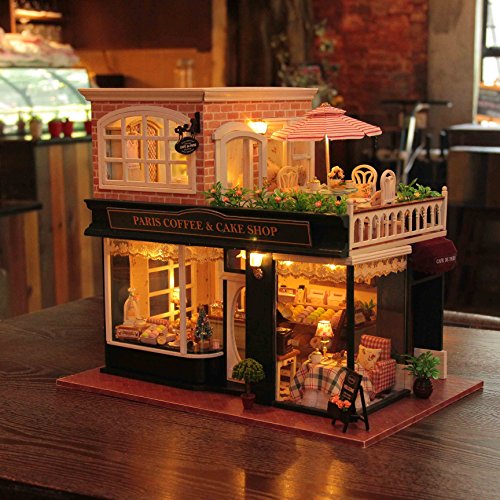 -. Title : Cuteroom Wooden Handmade Dollhouse Miniature DIY Kit - Romantic Cafe Wooden Dollhouses & Furniture/Parts(1:24 Scale Dollhouse)